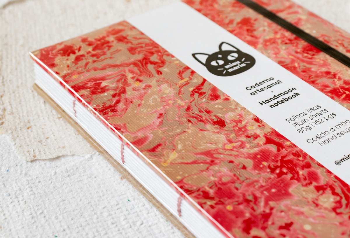 As capas são marmoreadas com tinta acrílica, que por si só é um material resistente, cujas cores não perdem saturação com o passar do tempo. O papel da capa possui ainda uma camada de verniz protetor, que confere um brilho extra. Por ser uma peça feita integralmente em papel não plastificado, deve ser mantida longe de fontes de água. Tendo esse cuidado básico, esta peça durará anos.
